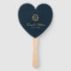 Monogram in Gold Wreath Blue Heart Wedding Program Hand Fan