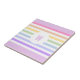Monogram in White Circle Pastel Rainbow Stripes Ceramic Tile