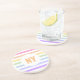 Monogram in White Circle Pastel Rainbow Stripes Coaster