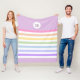 Monogram in White Circle Pastel Rainbow Stripes Fleece Blanket