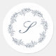 Monogram Indigo Blue Wreath Classic Script Wedding Round Sticker