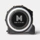 Tape Measure featuring your monogram initial in white with your surname below on a black background.