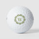 Monogram Initial Botanical Green Wreath Golf Balls. Elegant customisable leaf green text on white with a single leaf green initial monogram at the top, encircled by a digitally adjusted wreath of handpainted watercolor leaves.