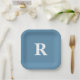 Monogram Initial Custom Colours Dusty Blue White Paper Plate