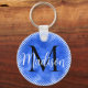 Monogram Initial Custom Name Blue Watercolor Key Ring