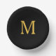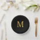 Monogram Initial Custom Name Gold Golden Black Paper Plate