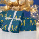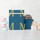 Monogram Initial Gold Blue Custom Name 2023 Wrapping Paper