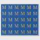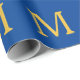 Monogram Initial Gold Blue Custom Name Party Wrapping Paper