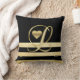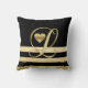 Monogram Initial 'L' Gold Black Heart Throw Cushion