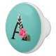 Monogram Initial Letter A in White Pink Rose Ceramic Knob