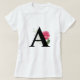Monogram Initial Letter A in White Pink Rose T-Shirt