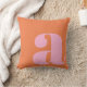 A bold and stylish throw pillow featuring a warm orange background with a large pink lowercase letter in modern typography. This eye-catching design adds a playful yet sophisticated touch to any space, making it perfect for contemporary, mid-century, or eclectic home decor. A great statement piece for living rooms, bedrooms, or office spaces.