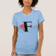 Monogram Initial Letter F in Black with Pink Rose T-Shirt