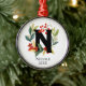 Monogram Initial Letter N Berry Wreath Christmas Metal Ornament