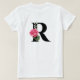 Monogram Initial Letter R in Black with Pink Rose T-Shirt