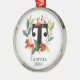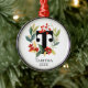 Monogram Initial Letter T Berry Wreath Christmas Metal Ornament