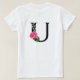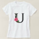Monogram Initial Letter U in Black with Pink Rose T-Shirt