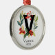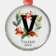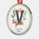 Monogram Initial Letter V Berry Wreath Christmas Metal Ornament