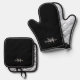 Monogram Initial Name Black Oven Mitt & Pot Holder Set