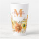 Monogram Initial Name Orange Watercolor Floral Latte Mug