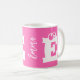 Fun bold typography, trendy handwritten script name, and monogram initial letter hot pink magenta and white custom coffee mug. +++++++++++++ Easy to personalise with your name and initial. It can be a cute, funny gift for her - girl, teen, or young woman on her birthday, Christmas, or any other occasion.