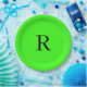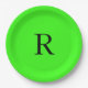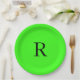 Monogram Initial Neon Green Bright Colourful Custo Paper Plate