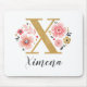 A beautiful, feminine monogrammed pink floral mouse pad, featuring pink flowers and a faux gold monogram letter X. Personalise the mouse pad by adding your name underneath the monogram. Makes a fun gift for a friend or for a bridesmaid gift. Designed for you by Blackberry Boulevard.