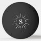 Black ping pong ball featuring your monogram initial inside a border of radial dots resembling a sun.