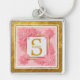 Monogram Initial "S" Floral - Pink Roses & Gold Keychain.