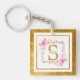 Monogram Initial "S" Floral - Pink Roses & Gold Keychain.