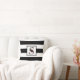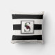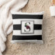 Personalise your living space beautifully with this black and white rugby stripes pattern. A square frame with double line border in the centre of the design has a large monogram with the letter "S". The S is embellished with a watercolor floral bouquet in burgundy and navy blue for a pop of colour on the otherwise monochromatic design. This design is also available in other letters of the alphabet.