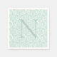 Pretty pastel green damask background with sage green monogram paper napkins.