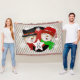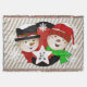 A snowman in a top hat, a snowman in a red winter hate and striped scarf, a background of grey diagonal stripes with a red polka dotted circle on black with a white star that you can easily customise with your monogram initial! This pretty snowman Christmas throw blanket will be a treasured item year after year!