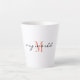 Modern latte mug featuring 'my world' in a stylish script with salmon colour monogram initial. Easily change text and initial to make it yours using the Template provided. Available in 12oz and 17oz capacity. See "About This Product" at side for more information.