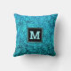 A turquoise and blue ombre leaf foliage damask pattern on a rich, deep turquoise textured background adorns this modern, trendy and girly monogramed throw pillow. Customise this elegant throw pillow with your monogram initial. Makes a fun and stylish statement every time you relax with it. Also a great gift for a special friend!