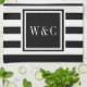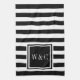 Monogram Initials Black White Stripe Personalised Tea Towel