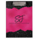 Monogram Initials on Luxurious Black and Hot Pink Clipboard