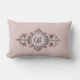 Monogram Initials Pink Grey Silver Flourish Ornate Lumbar Cushion