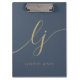 Monogram Initials Professional Minimal Gold Script Name Navy Blue Clipboard