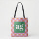 Monogram initials retro modern geometric pink and green personalised tote design.