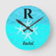 Monogram Initials Starfish Teal Turquoise Pastel Round Clock