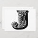 Monogram J Initial Black and White Floral Note Holiday Card