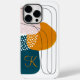 Stylish Monogram K Teal Orange Boho Abstract Art Case-Mate iPhone 14 Pro Max Case.
