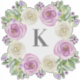 Your monogram initial featured in a hand painted watercolor wreath of light lavender with red hued purple and eggplant purple flowers. Wild roses and white peony blossoms are paired with leaf foliage and berries. A complete, mix and match set of elements are available. Copyright, Audrey Jeanne Roberts.