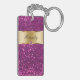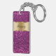 Monogram keychain with pretty printed gold monogram emblem you can personalise with any name, initials, or message and printed purple diamond jewel bling, along with simulated purple glitter printed background you can use as a gift or party favour. Designed as keychains for women or keychains for girls, in a fun two side acrylic design that lets you carry your keys in style.