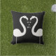 Monogram Kissing Flamingos Black Outdoor Pillow