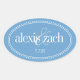 Monogram Label, Blue, Caroline Wedding Oval Sticker