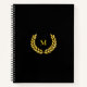 Monogram and laurel on black background Notebook. A golden star on the back side.