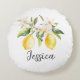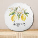 Monogram Lemon Fruits White Flowers Tree Branch Round Cushion