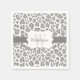 Chic, modern, pretty wild animal big cats leopard print cocktail napkins in white and grey with a grey stripe and white edged with grey banner you can personalise with your monogram initial and name.
